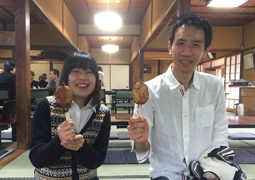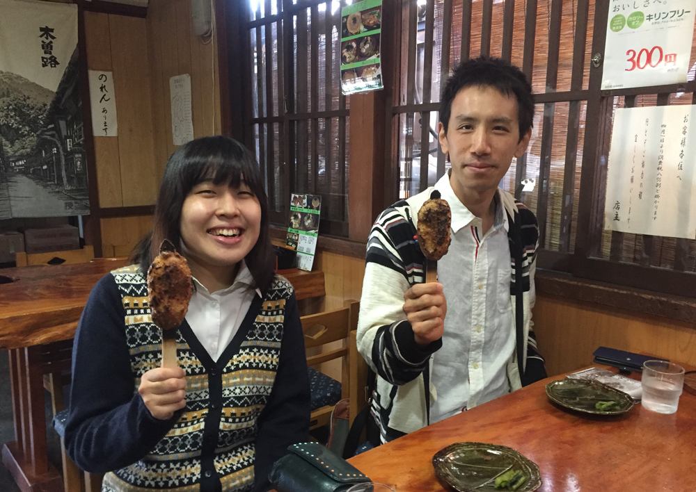 「今、妻籠宿の五平餅を全部食べる企画をしているんですよ。」
