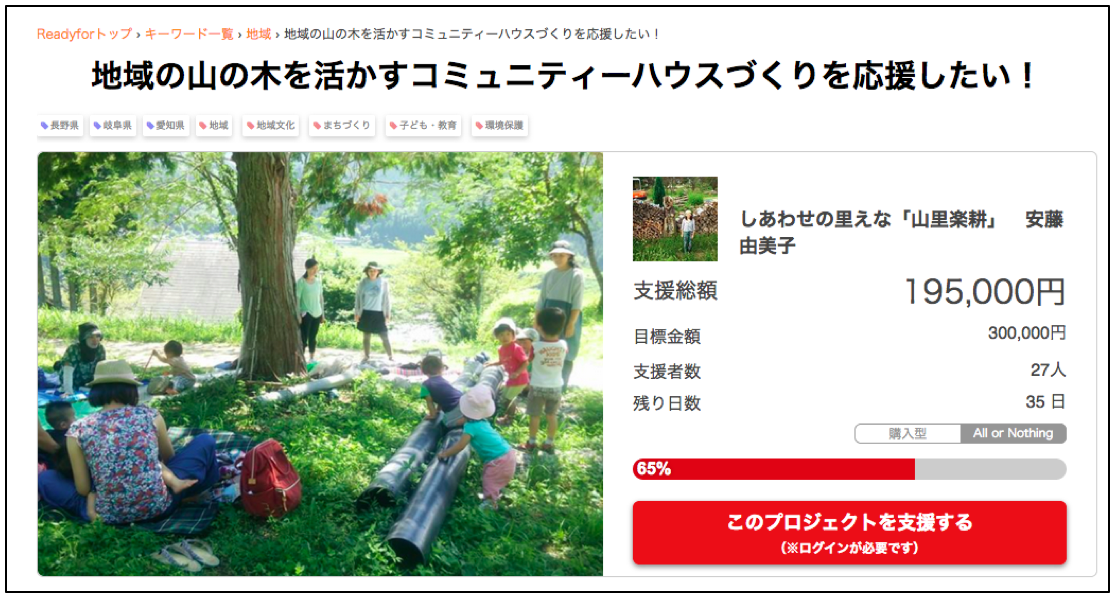 ・「地域の山の木を活かすコミュニティーハウスづくりを応援したい!」クラウドファンディングページ
