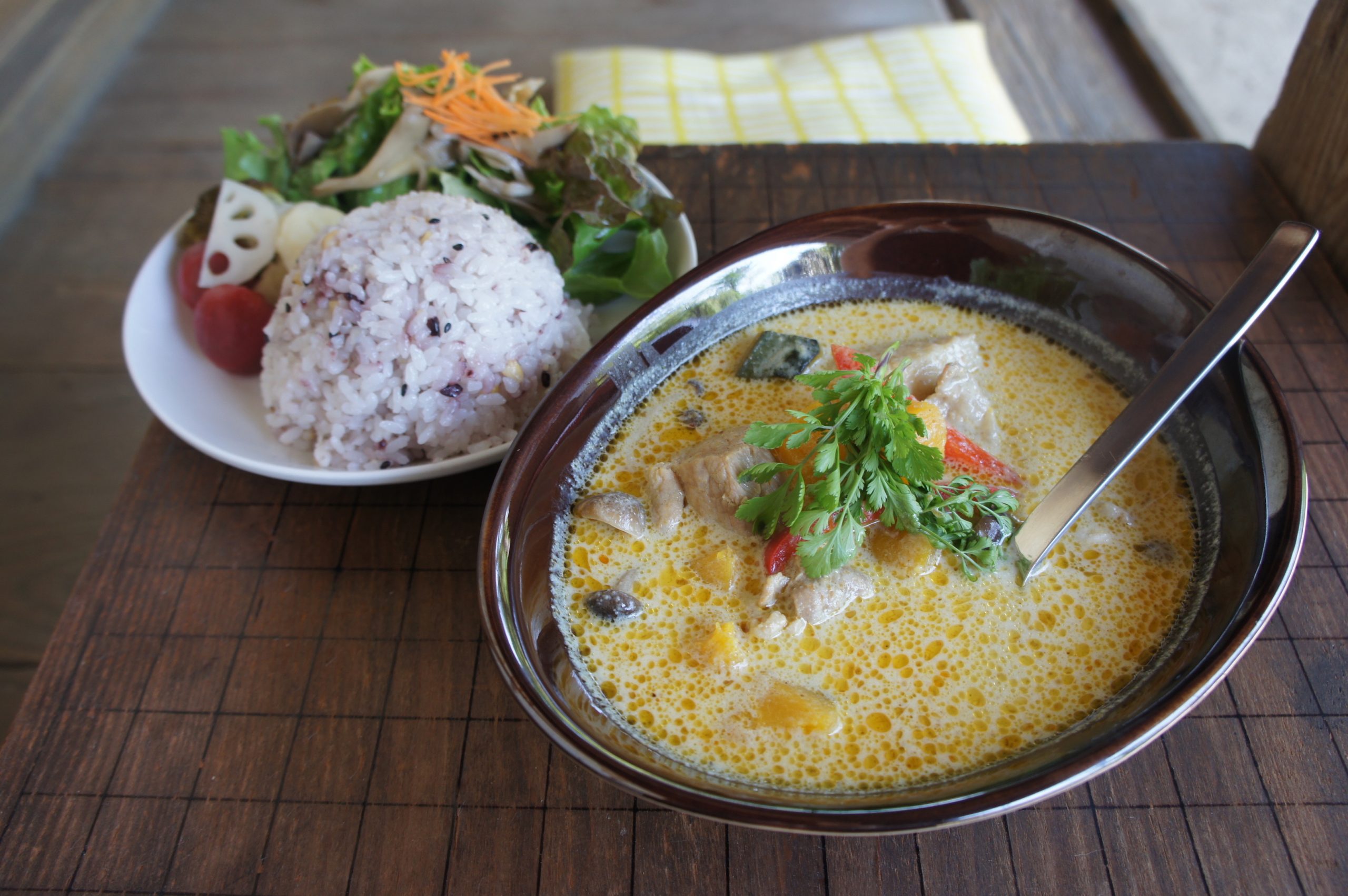 ピリッとしたルーの中には、野菜や豚肉がゴロゴロ。グリーンカレーの日もオススメだよー!と、常連さんが教えてくれました。