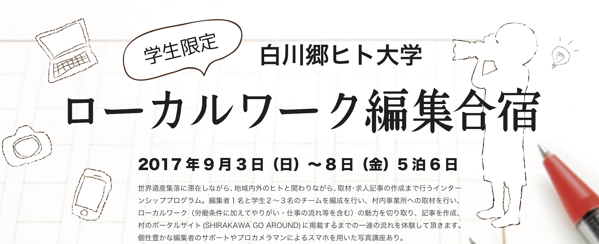 そんな白川郷ヒト大学で9月3日〜8日に開かれるのが「ローカルワーク編集合宿」。